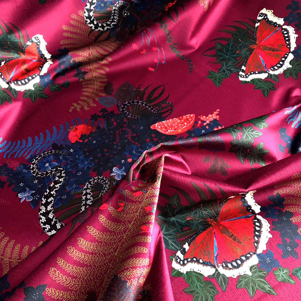 Forbidden Fruit in Crimson Deep Red | Snakes Design Velvet Fabric by the Metre