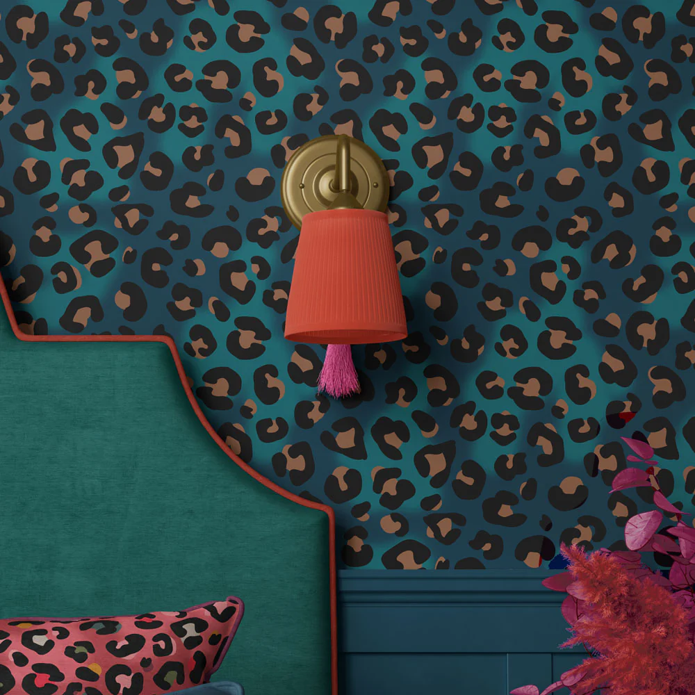 A Bold Leopard Print Designer Wallpaper for Statement Interiors in Blue