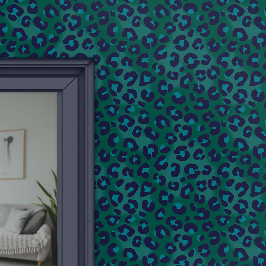 A Bold Leopard Print Patterned Wallpaper for Statement Interiors in Green & Teal