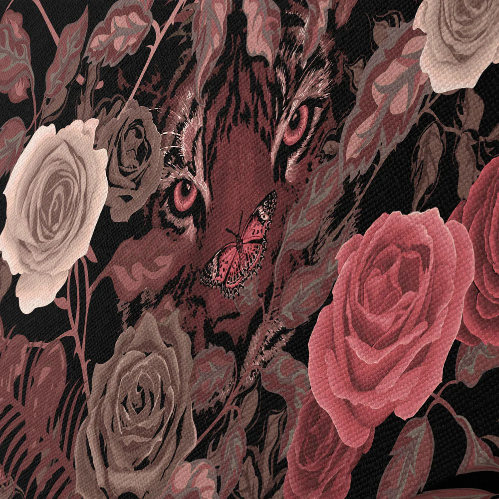 Dramatic on the wall in Pink and Black, this dark floral Framed Canvas Print is truly a fearless beauty, and has more than first meets the eye! With the beautiful eyes of a Bengal Tiger peering out from behind the roses, Bengal Rose Garden makes for Wall Art which is both intriguing and beautiful.