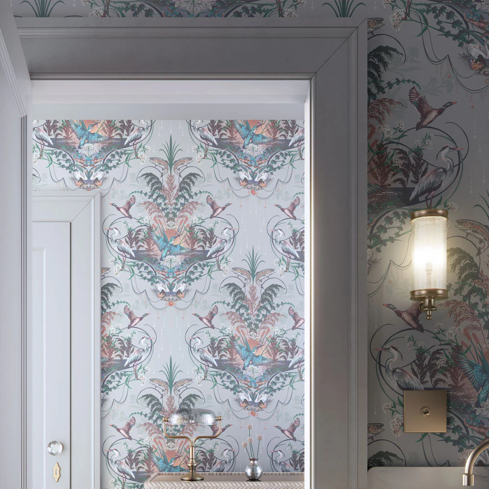 Enjoy the graceful splendour of an English riverside on this Luxury Designer Wallpaper. Stunning on Pale Blue, River Sonata in Tranquil captures the serenity of a tranquil light sky by the river. Filled with intricate painterly details, the River Sonata Wallpaper offers an elegant composition, perfect for creating beautiful interiors, whether chosen for a single feature wall or for all-over pattern in a room. This design originates from the exquisite original artwork of British designer, Becca Who.