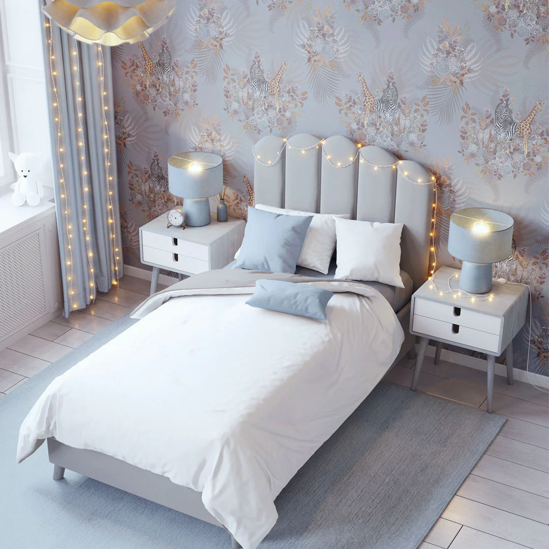 The Wild Blooms wallpaper is both timeless and versatile, complementing all interior styles and effortlessly coordinated into a scheme. Whether chosen for an elegant nursery, calming bedroom or other space, this beautiful designer wallpaper adds character and opulence to an interior.Ā